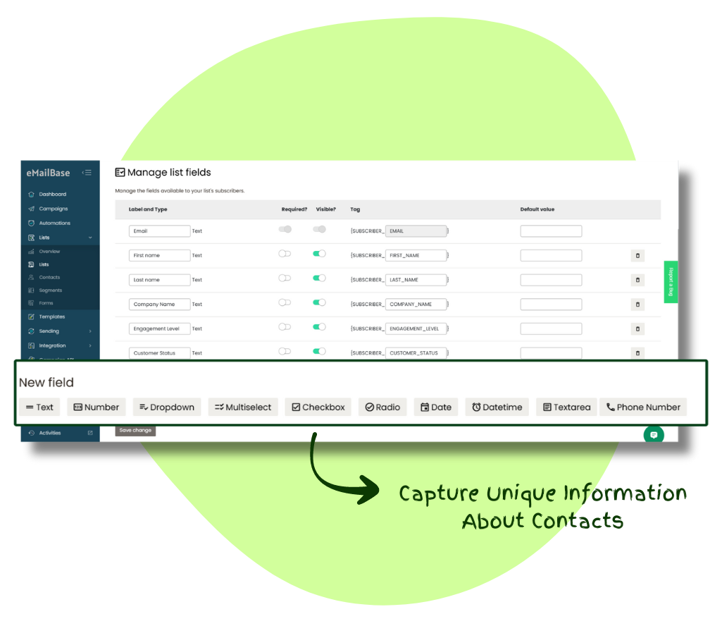 - Personalized Communication: Use custom fields to personalize your emails and campaigns.