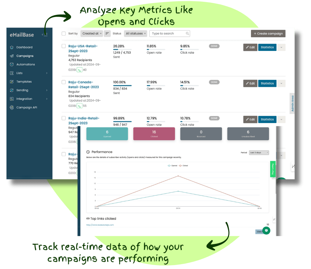 - Engagement Metrics: Analyze key metrics like opens, clicks, and more.