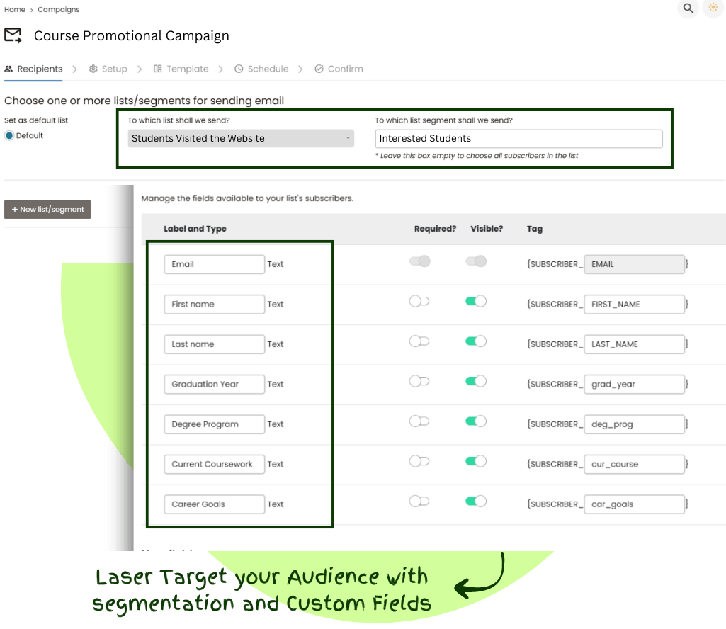 - Targeted Outreach: Reach prospective students with personalized campaigns.