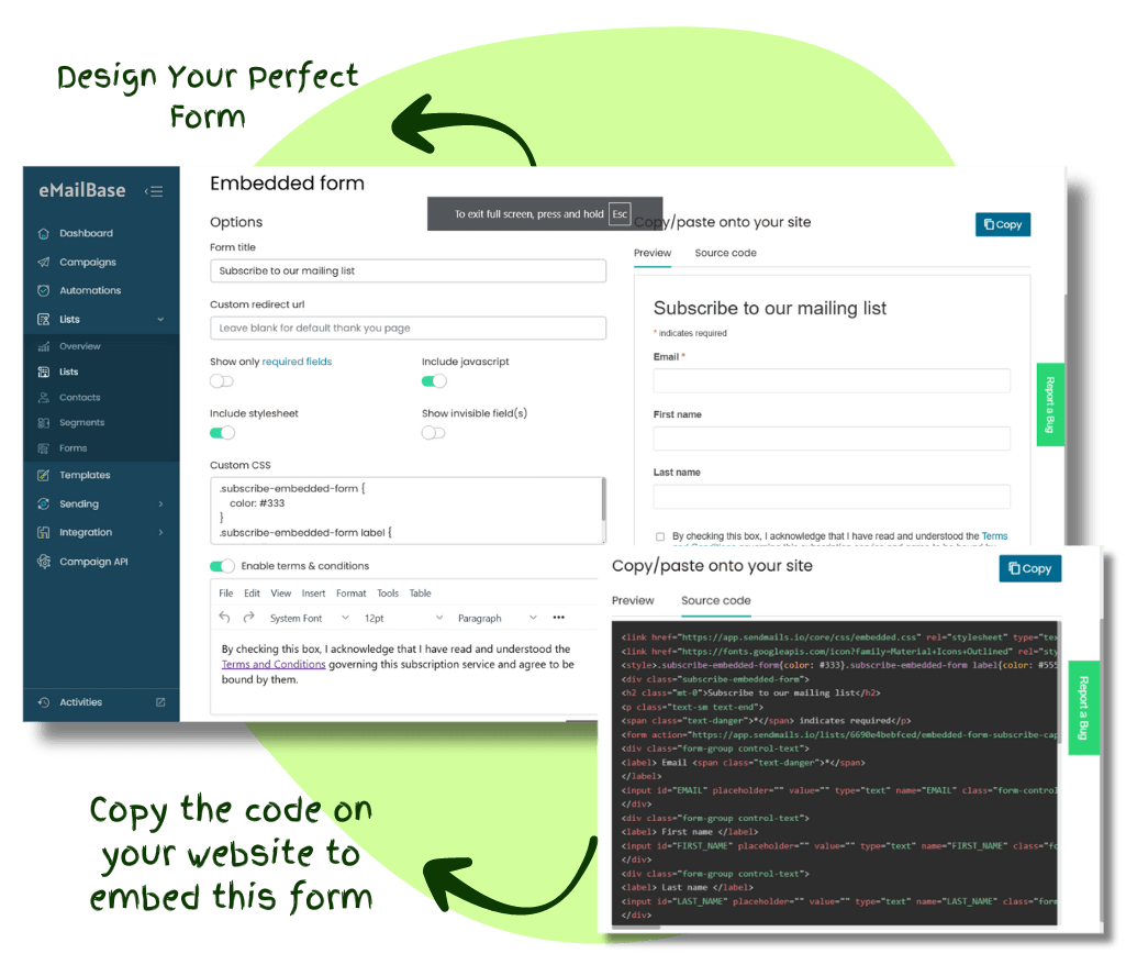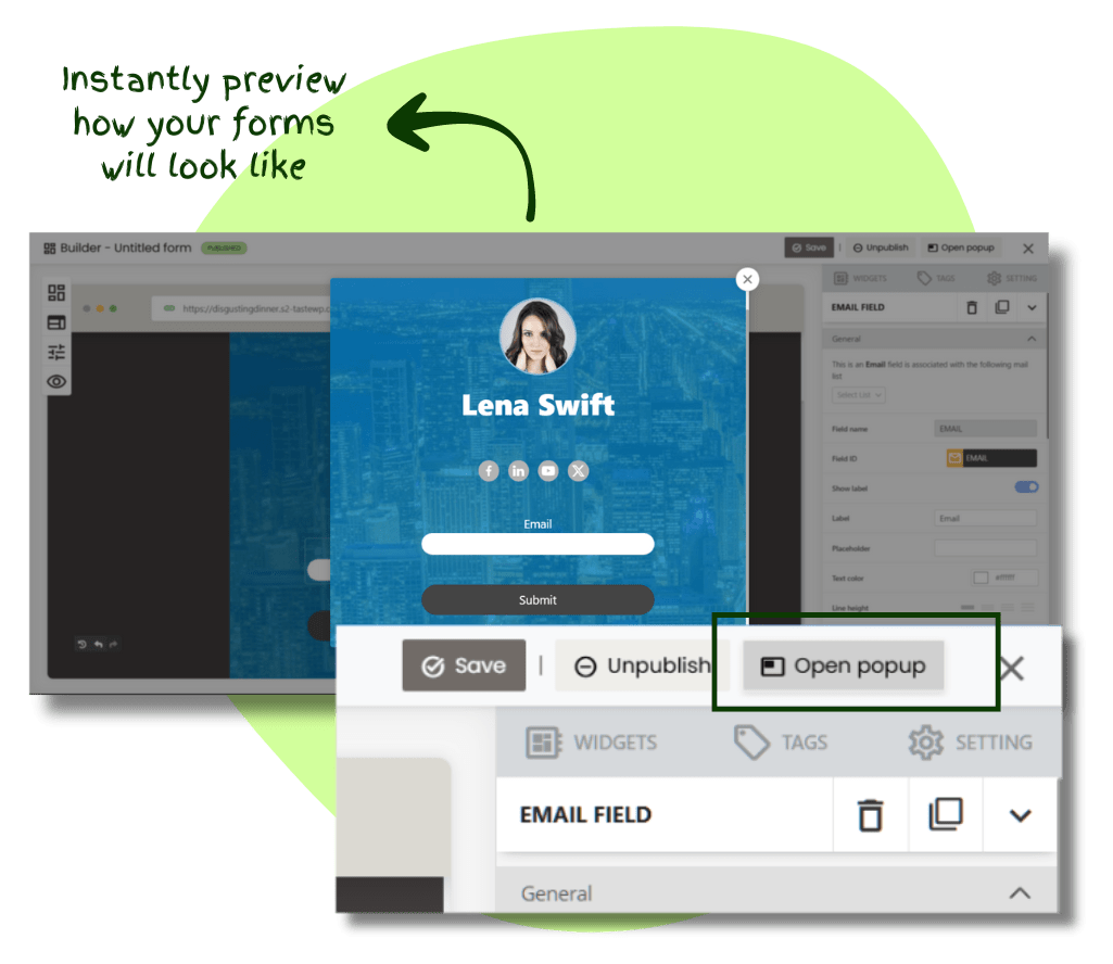 With eMailBase’ Instant Preview feature, you can view your forms as you create them, ensuring they look perfect before going live