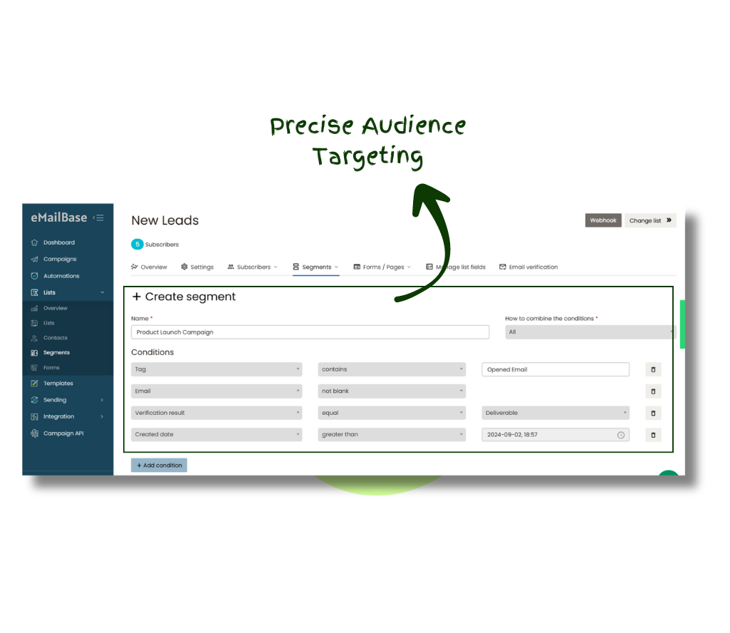 - Detailed Segmentation: Create targeted segments based on customer behavior and demographics