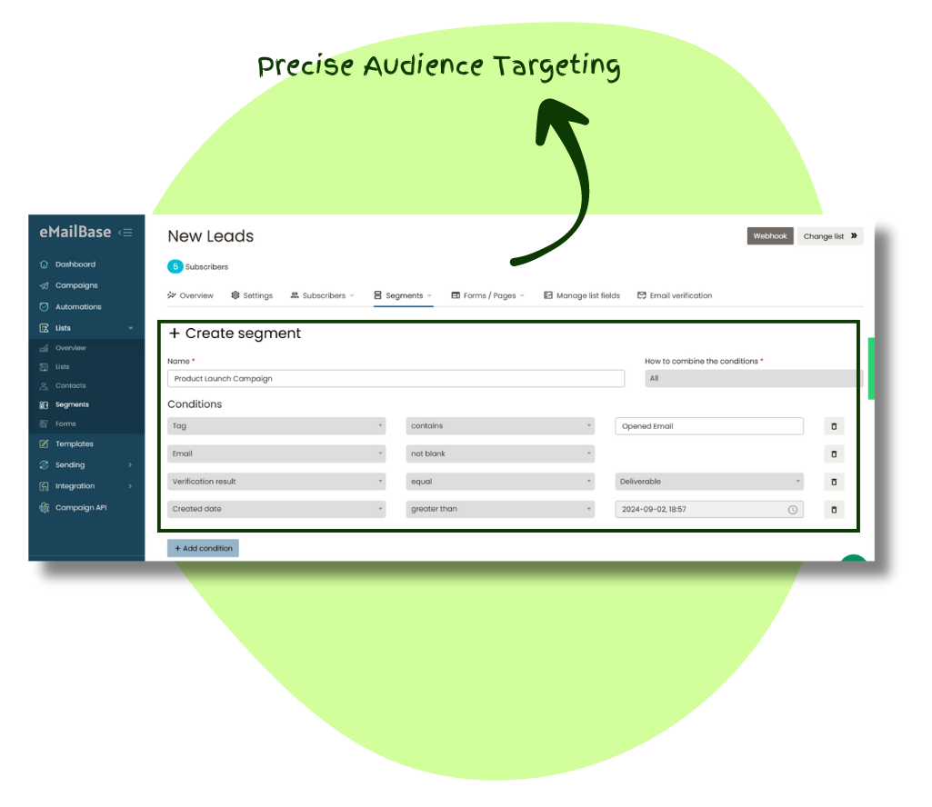 - Detailed Segmentation: Create targeted segments based on customer behavior and demographics
